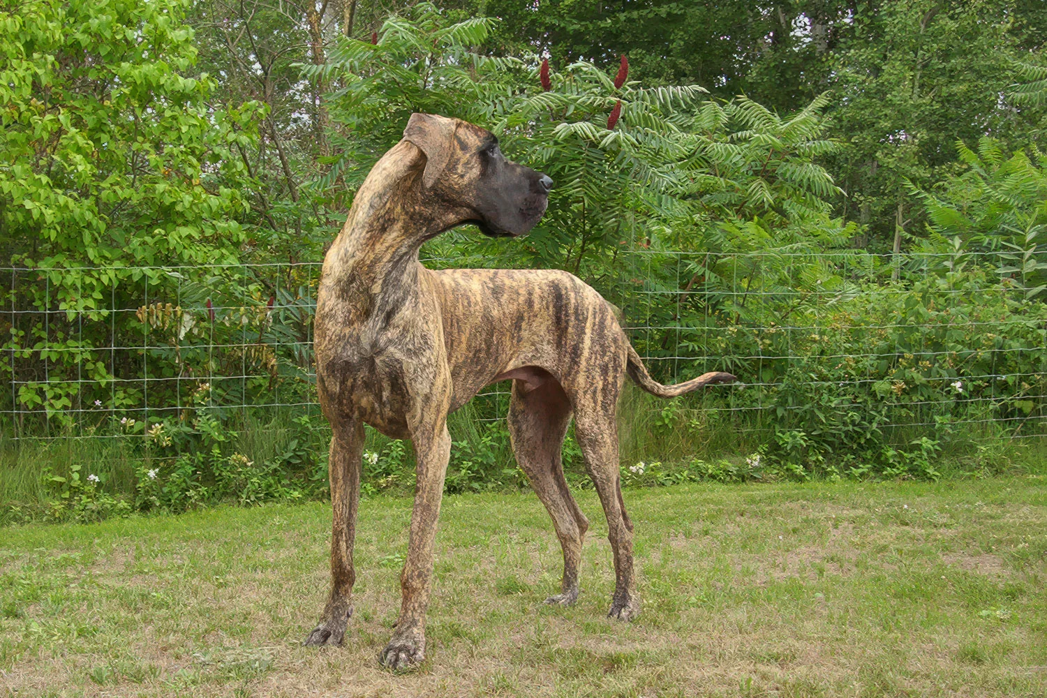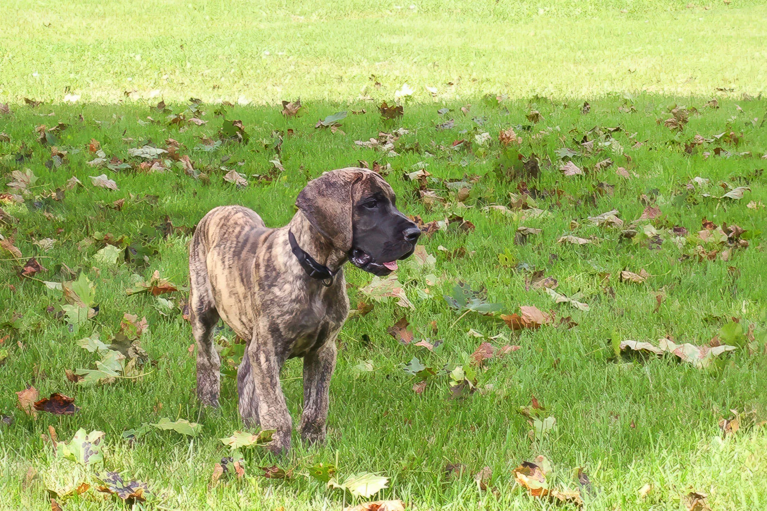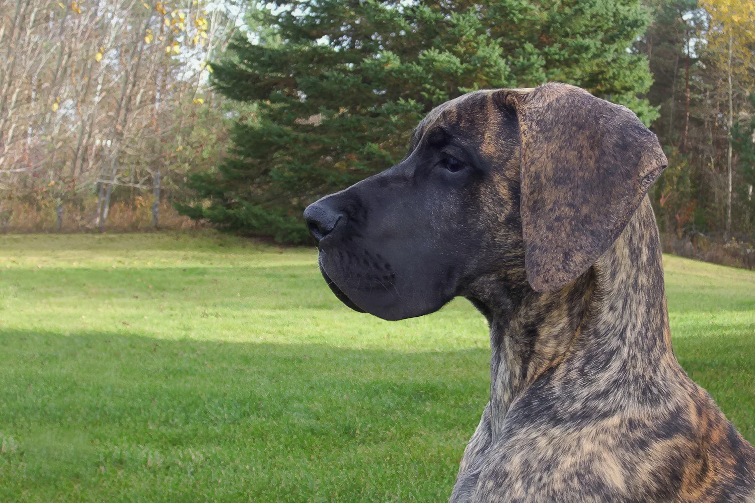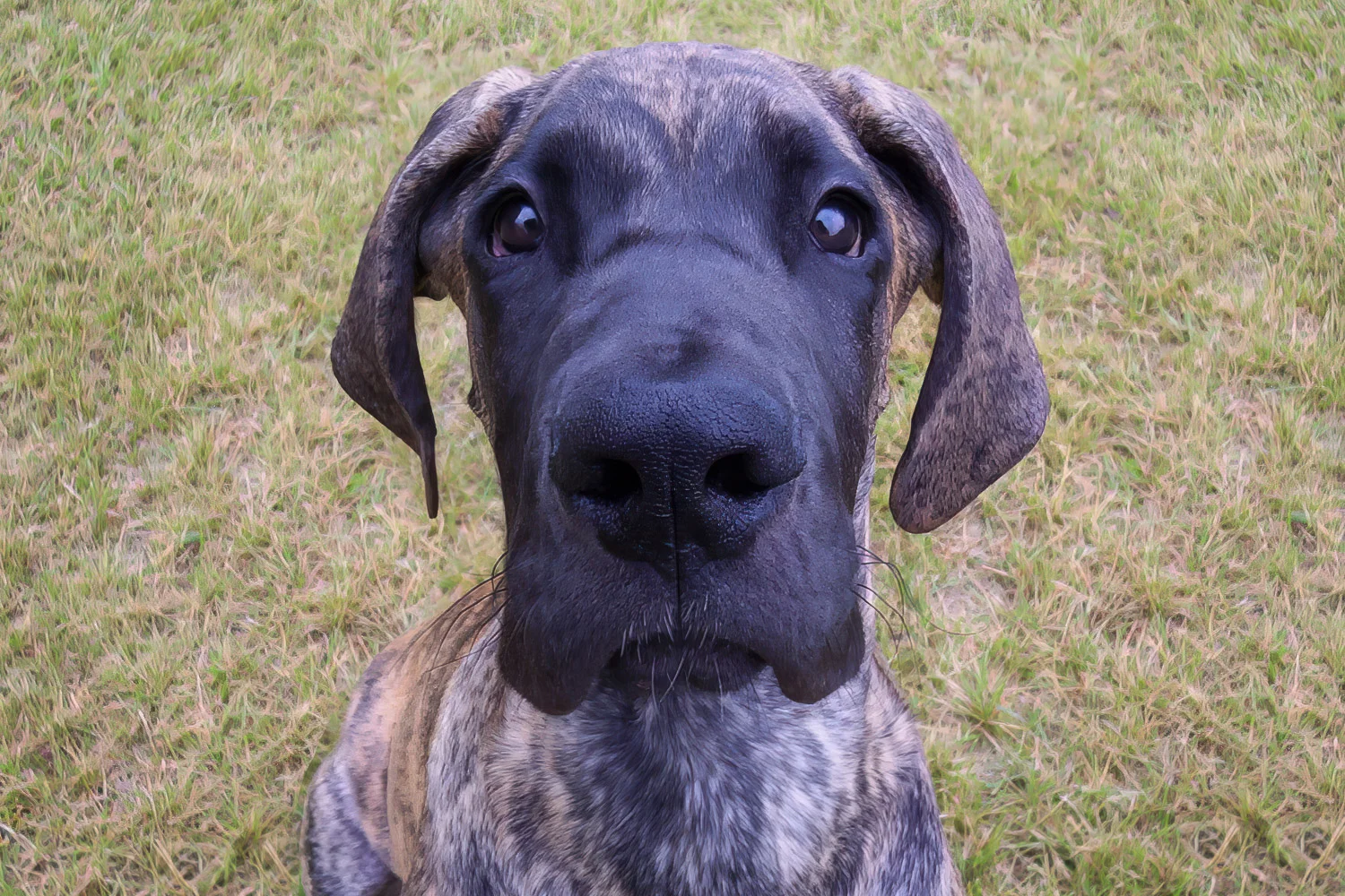 The first six months of Elliott’s life were remarkable. He went from 1.6 pounds (725 g) at birth to 100 pounds (45 kg) and 31 inches (79 cm) in just 26 weeks. Elliott excelled at obedience and was a happy, comical puppy. Although he had always drawn a crowd wherever he went, the attention Elliott garnered grew as fast as he did. People were mesmerized by his markings and amazed by his height. Elliott was a statuesque beauty. His elegant neck, rich colour, thoughtful expression, and gorgeous contours made him a joy to watch and a treat to photograph.