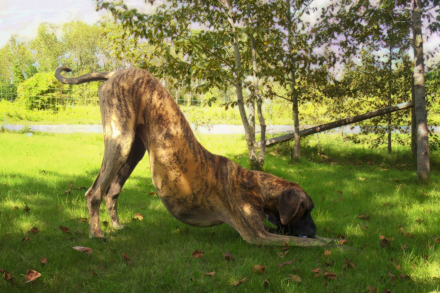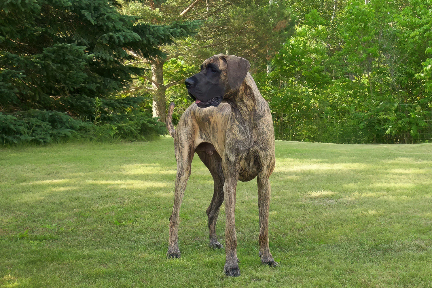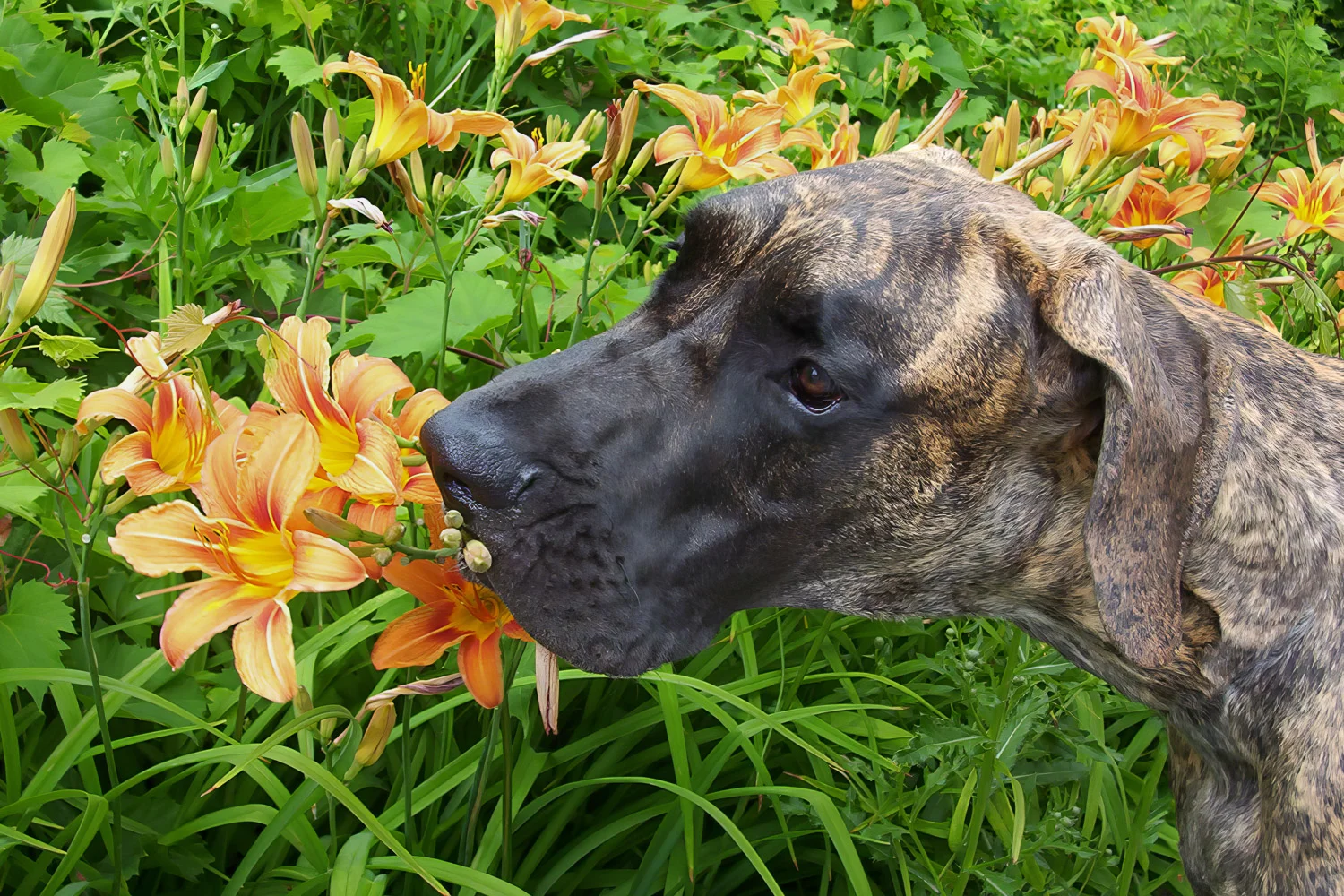 When Elliott was nine months old, his meagre confidence began to wane, and by one year of age, it was nothing but a memory. Elliott was a timid Dane, fearful of men, children, and small dogs. Elliott’s passion was women. He was a shameless flirt and never met a woman he couldn’t woo. At 12 months of age, Elliott stood 36 inches (91 cm) at the shoulder. He quickly realized that cleavage made an excellent chin rest, the kitchen sink was the perfect water bowl, and all laps were a personal invitation to sit.