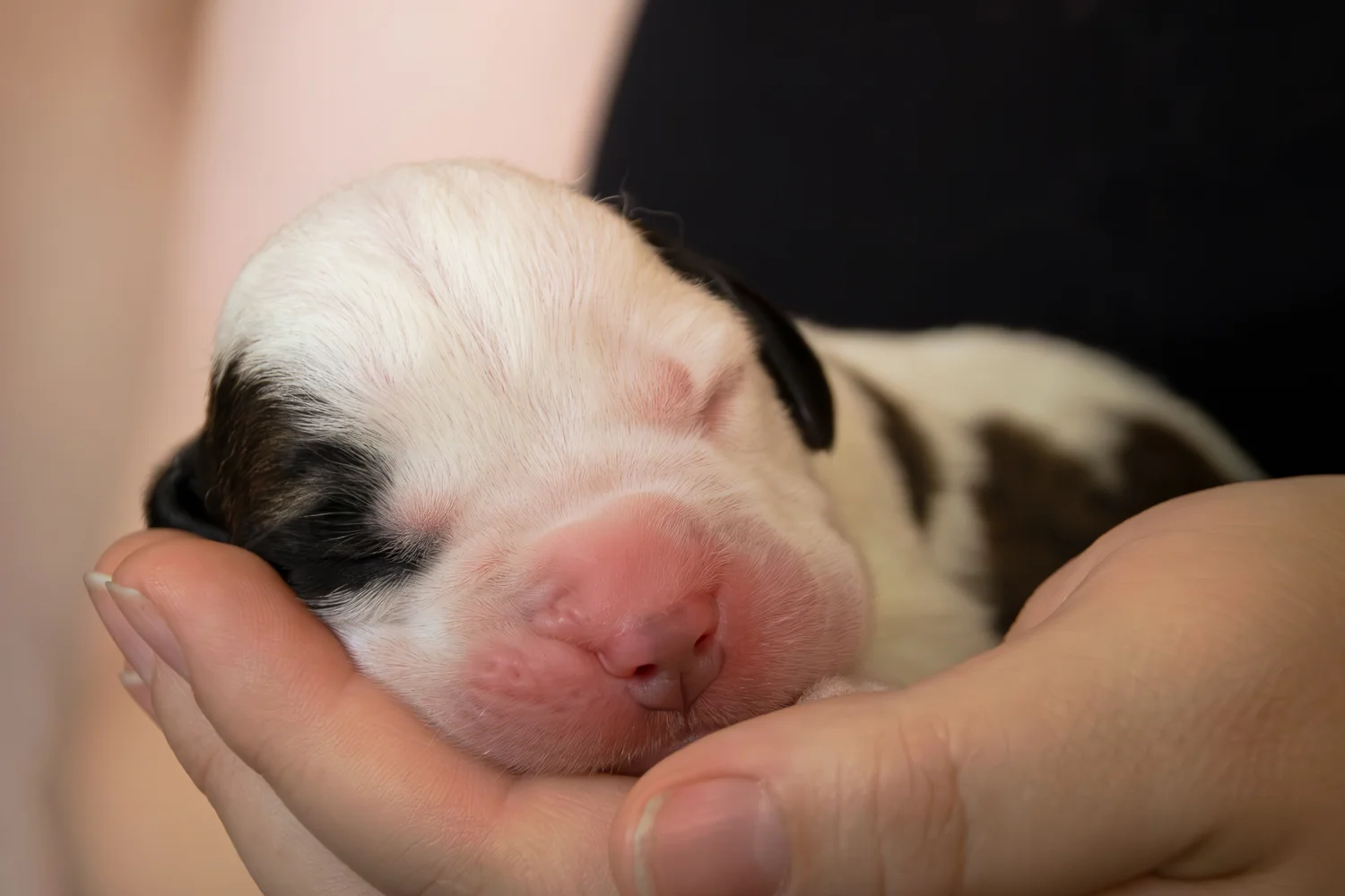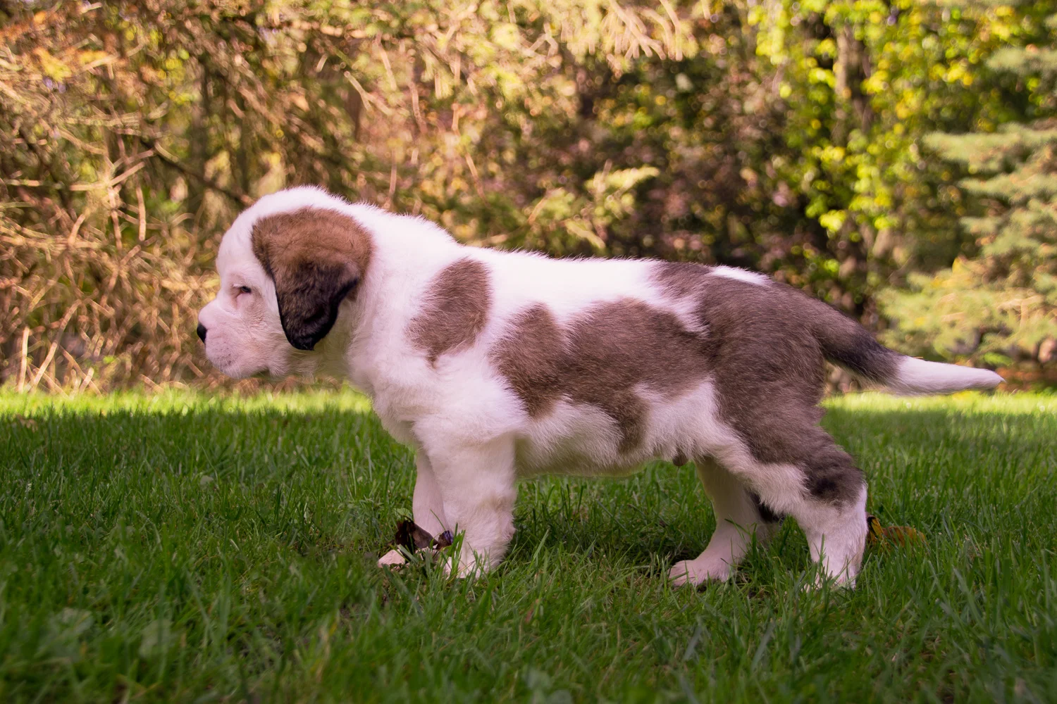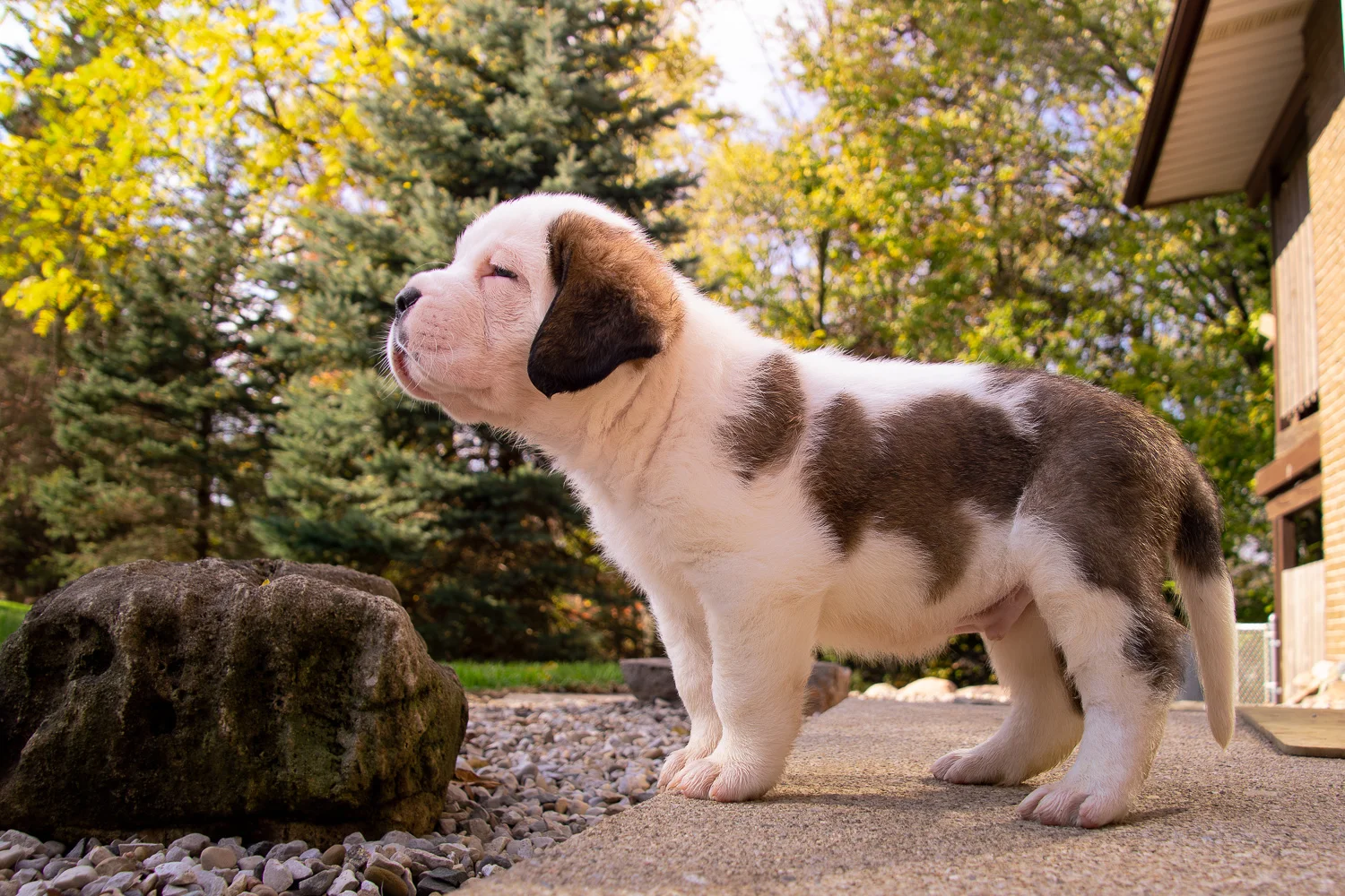 After losing Norm, I was inconsolable. I called Norm’s breeder, and she was expecting a litter within days. I begged to be put on her list for a boy. I jokingly requested a half-masked splash coat (white with brown patches) male, so he wouldn’t look like his predecessor, Norm. A week later, I got a call from the breeder. The puppies had arrived. All the pups were full mantle with full masks, except one boy. One male pup was a splash coat with a half mask.
