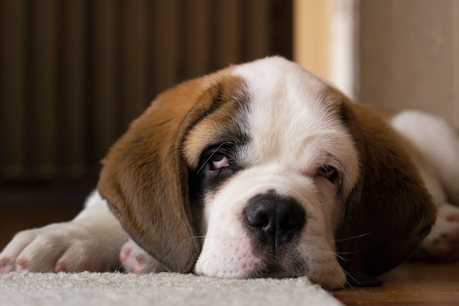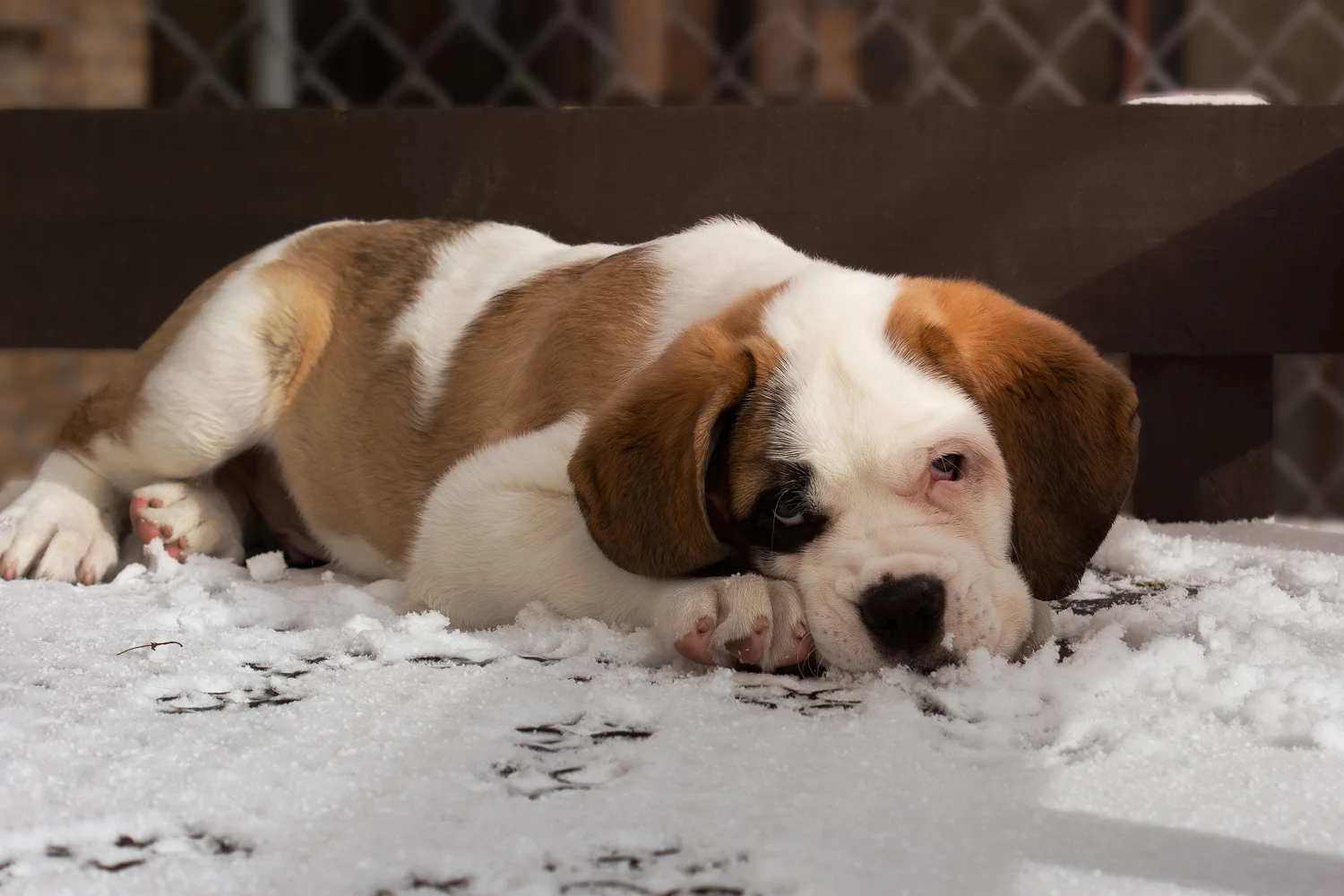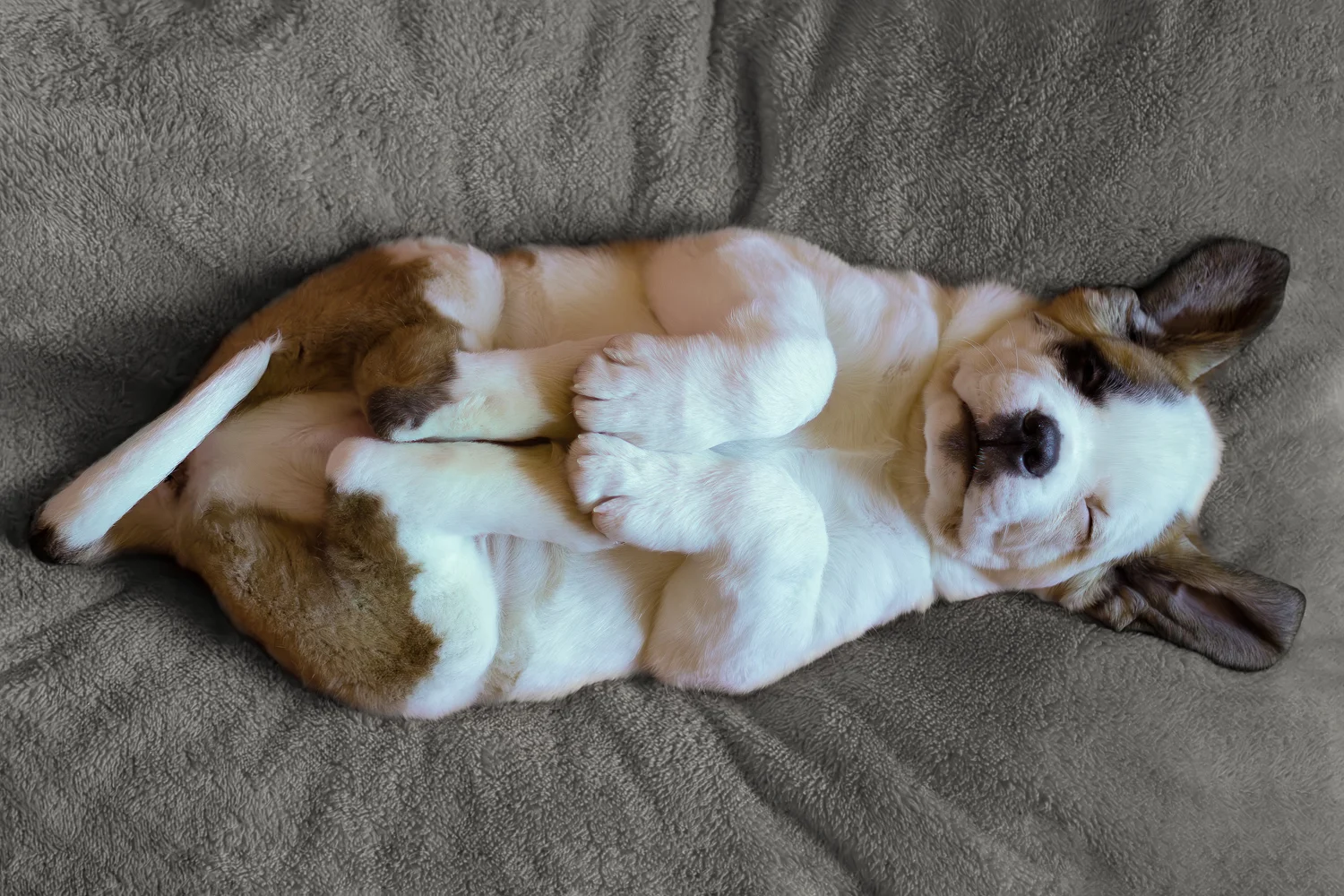 After losing Norm, I was inconsolable. I called Norm’s breeder, and she was expecting a litter within days. I begged to be put on her list for a boy. I jokingly requested a half-masked splash coat (white with brown patches) male, so he wouldn’t look like his predecessor, Norm. A week later, I got a call from the breeder. The puppies had arrived. All the pups were full mantle with full masks, except one boy. One male pup was a splash coat with a half mask.
