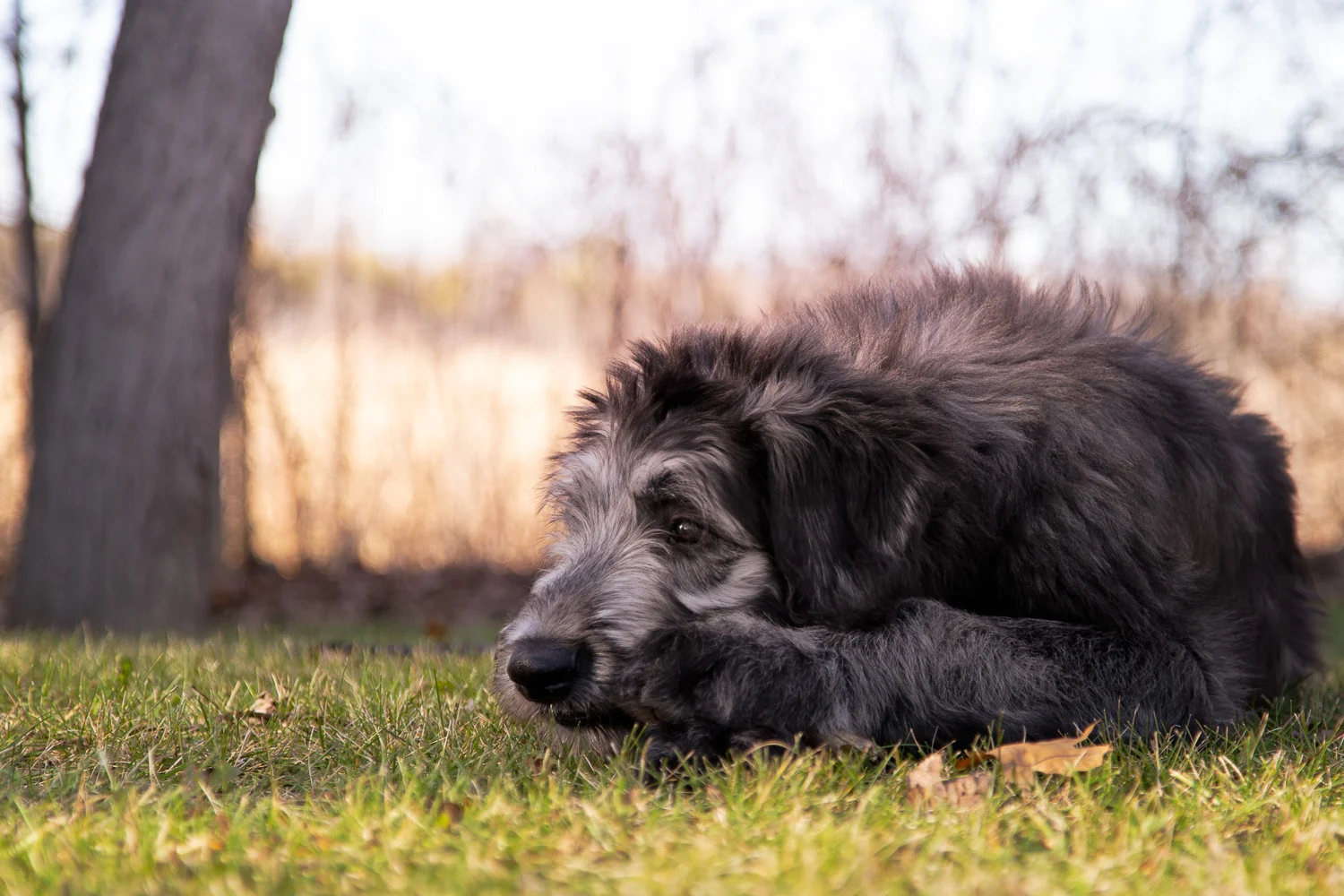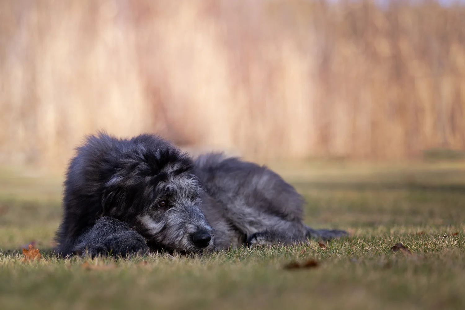 Stanley was a “woolly” Wolfhound. His coat was longer and softer than it should be for his breed. One of my greatest accomplishments was keeping Stan’s coat natural without clipping him down. He had to be line combed every other week, or he would mat to the skin. Thankfully Stan enjoyed being groomed, and he would nap until I asked him to flip over, which he kindly obliged.